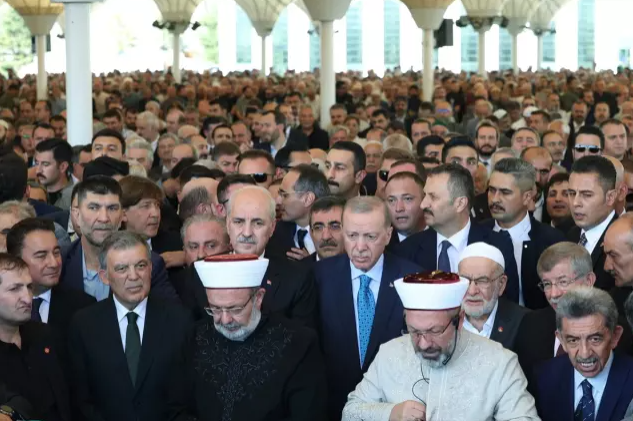 Cumhurbaşkanı Erdoğan’ın da katıldığı cenaze töreninde organizasyon eksikliğinden dolayı siyasiler zor anlar yaşadı. Diyanet İşleri Başkanı Ali Erbaş tarafından kıldırılan cenaze namazında Erdoğan’ın bir dönem beraber yol yürüdükleri Abdullah Gül ve Ahmet Davutoğlu uzun yıllar sonra yan yana gelmesi dikkat çekti.